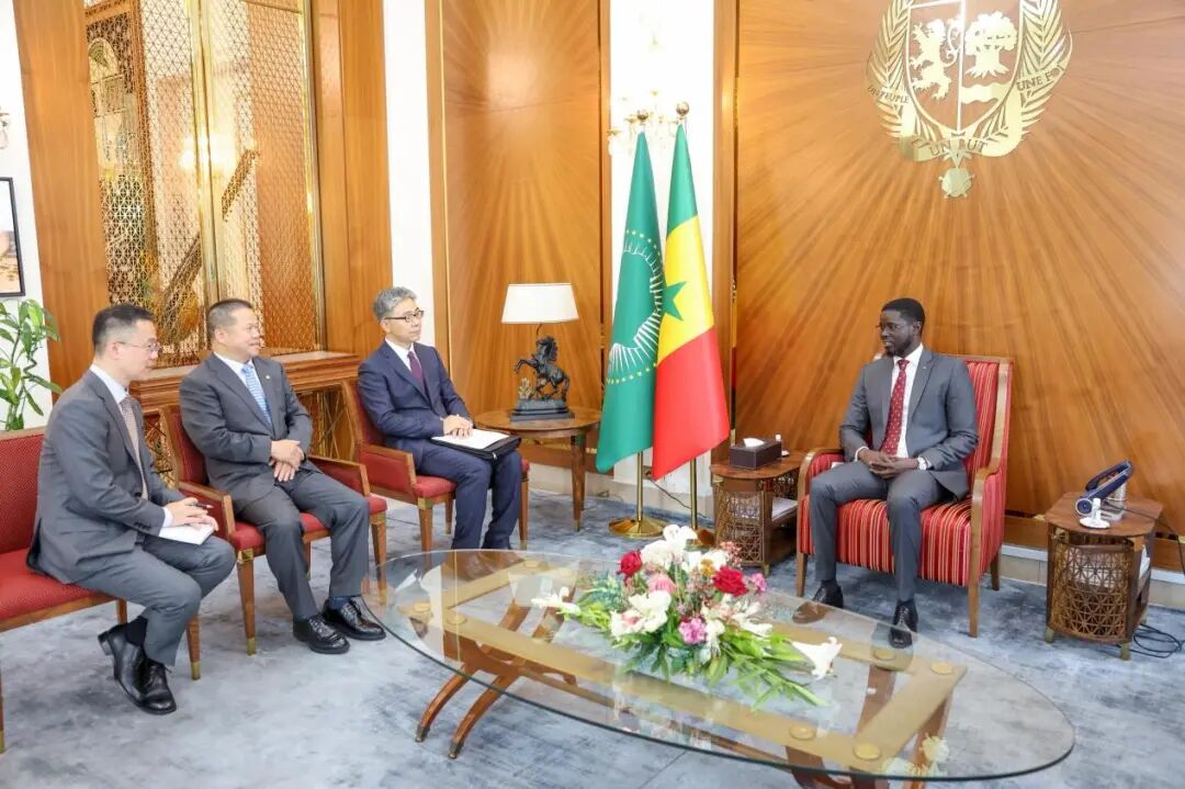 当地时间2025年11月4日下午,中地海外公司董事长兰眉中一行在中国驻塞内加尔大使李志刚的陪同下,拜会塞内加尔共和国总统迪奥马耶·法耶。