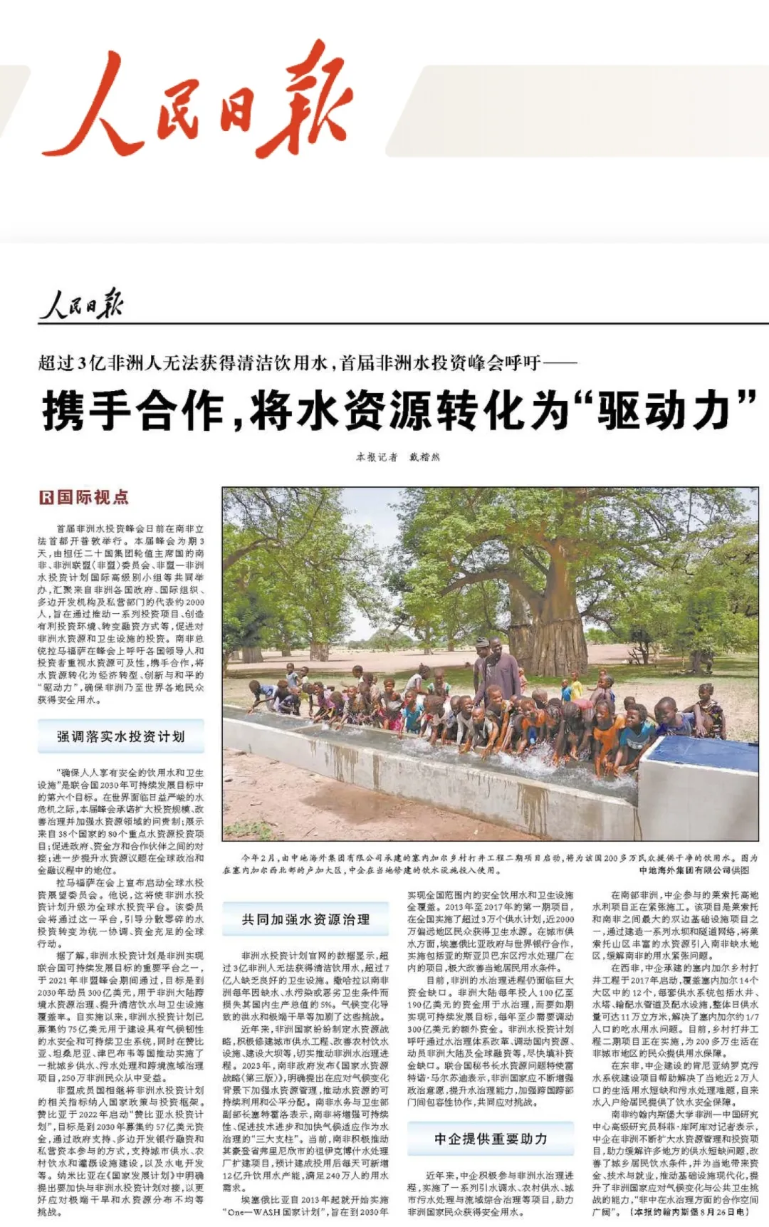 人民日报对峰会情况作专题报道,其中专门以中地海外公司实施的塞内加尔乡村打井工程作为报道配图,并将项目作为中企助力非洲国家民众获得安全用水的典型案例加以介绍。以下是相关报道内容,让我们一起了解下!