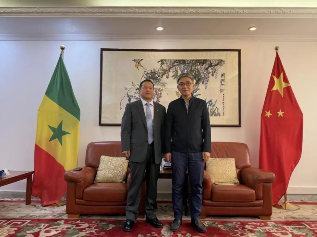当地时间2025年11月4日,中地海外公司董事长兰眉中一行赴中国驻塞内加尔大使馆拜会李志刚大使。双方就中塞经贸合作成果及深化重点领域发展进行交流。